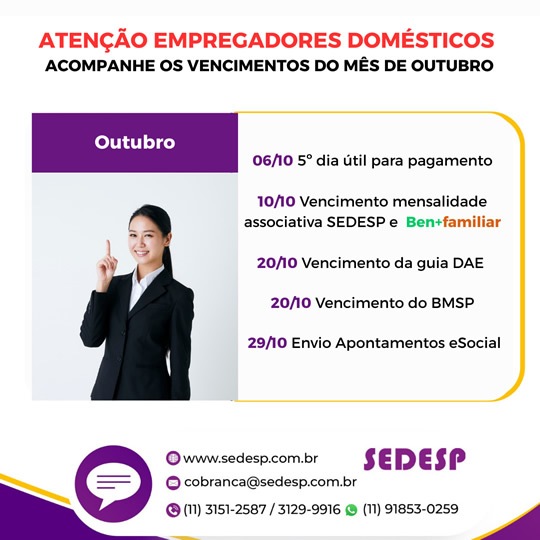 Not�cia - 01/10/2025 - Calendário de OUTUBRO para o Empregador Doméstico